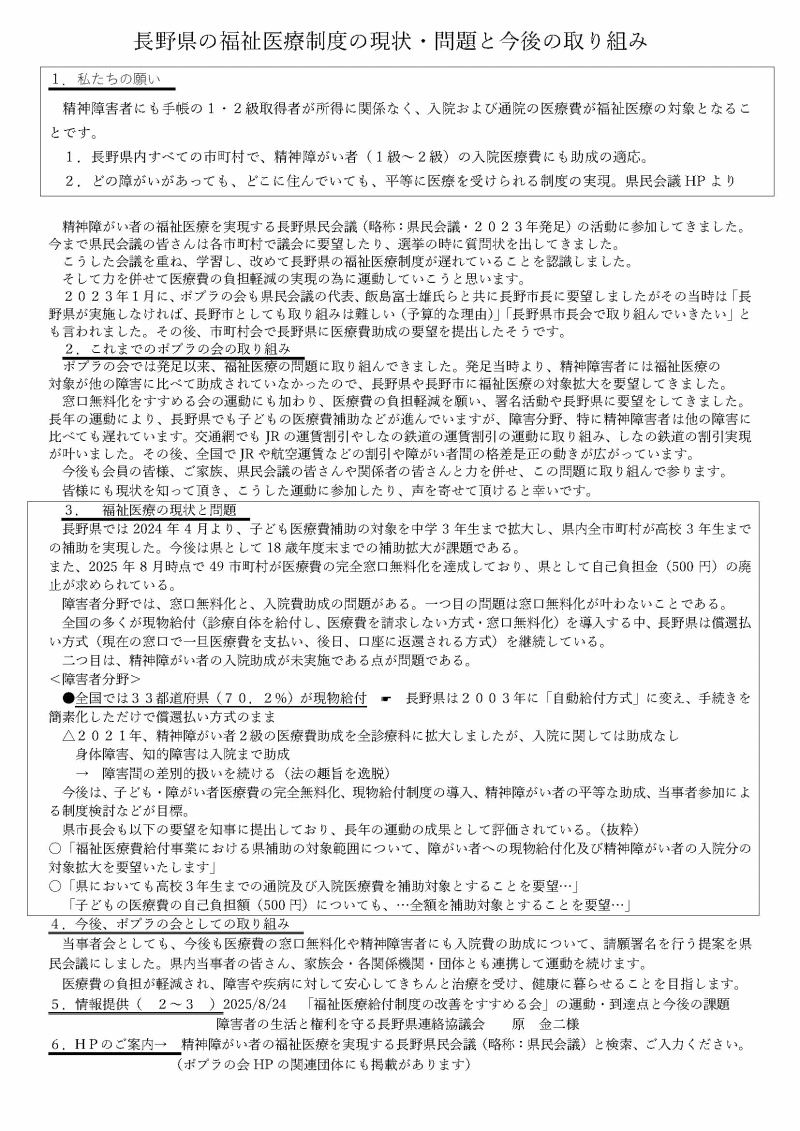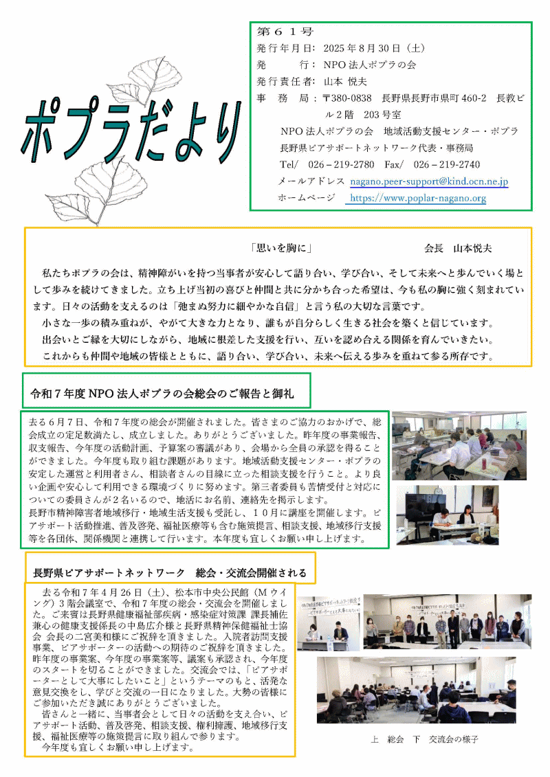 | 私たちは長野に拠点を置く、精神障がい者の当事者会です | |||