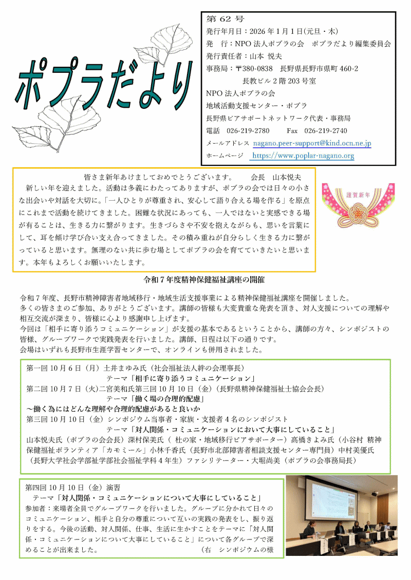 | 【 長野県ピアサポートネットワーク事務局 】 | |||