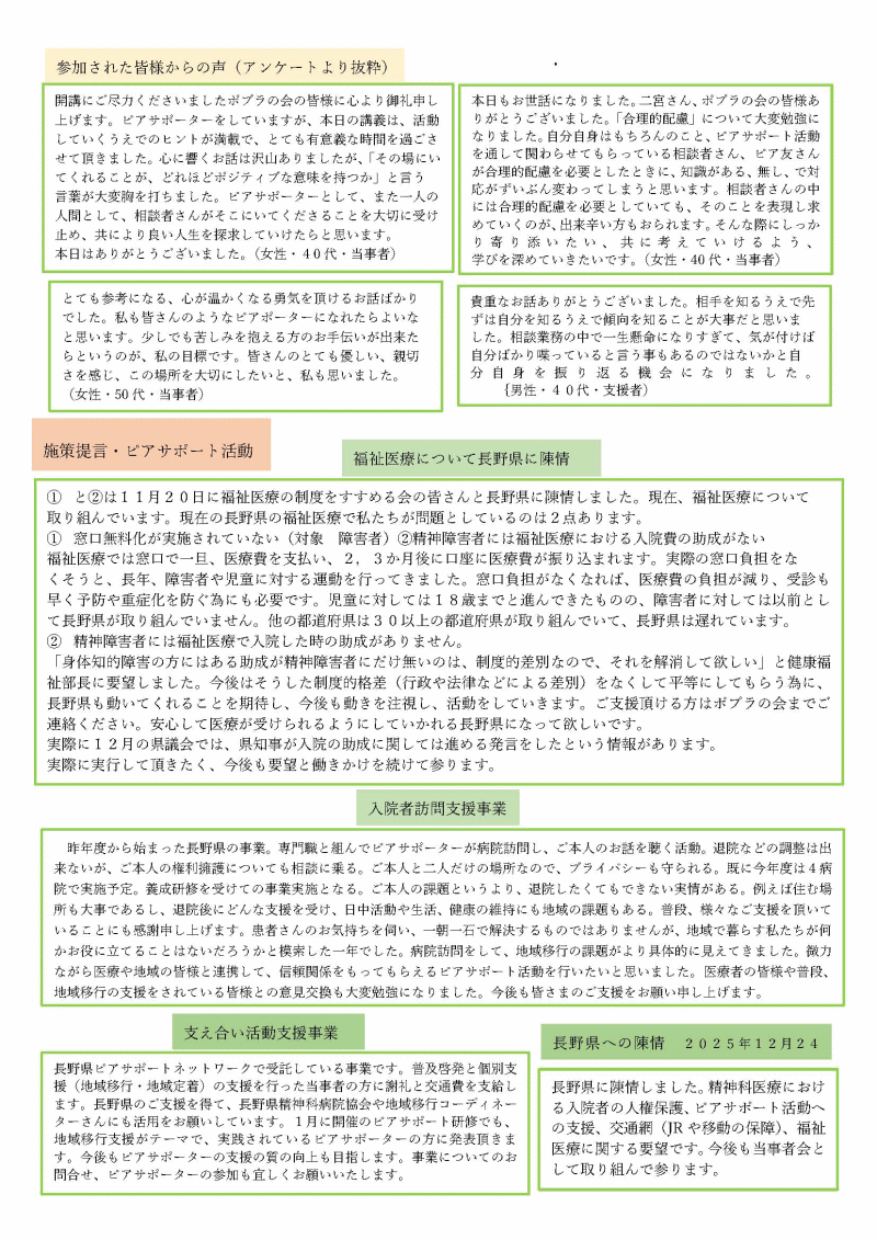 | 私たちは長野に拠点を置く、精神障がい者の当事者会です | |||