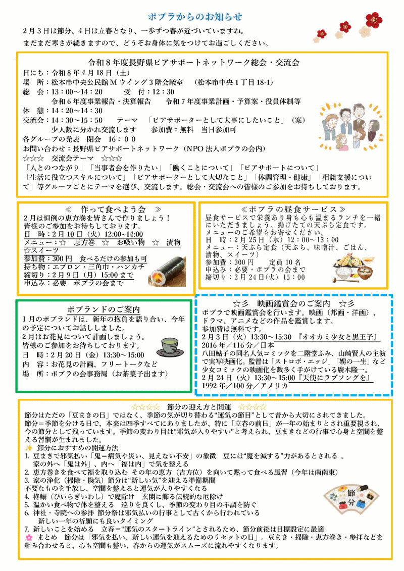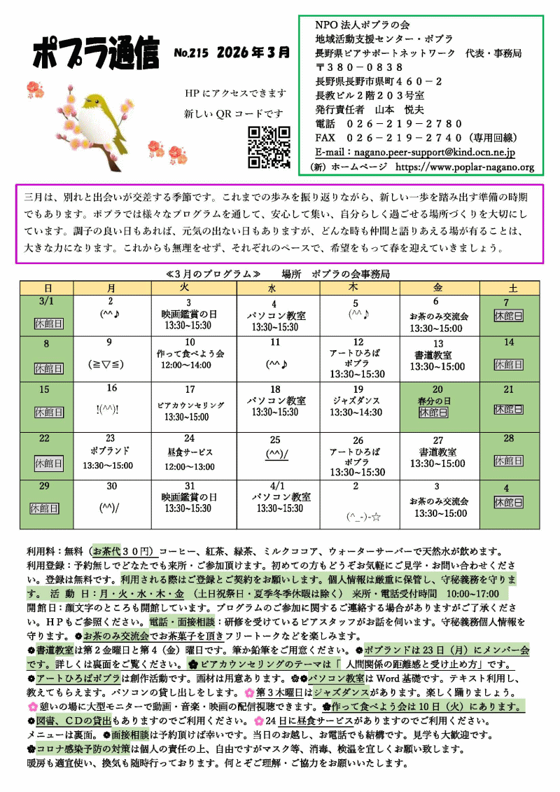 | ポプラ通信 3月号の表面と裏面PDFファイルでご覧になれます こちら⇒(PDFファイル) | |||